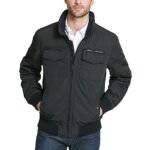 Tommy Hilfiger Chaqueta aviadora de sarga y poliéster, para hombre., XL, Negro