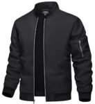 TACVASEN Chaqueta bomber para hombre, ligera, casual, primavera, otoño, cortavientos, con cremallera y bolsillo, #01 negro, Grande