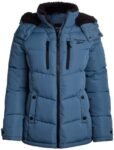 🛒 Reebok Chaqueta Acolchada para Mujer – Abrigo Acolchado Pesado con Capucha de Ribete de Piel Sintética – Chaquetas de Invierno de Plumón para Exteriores para Mujer, Azul polvoriento, Mediana